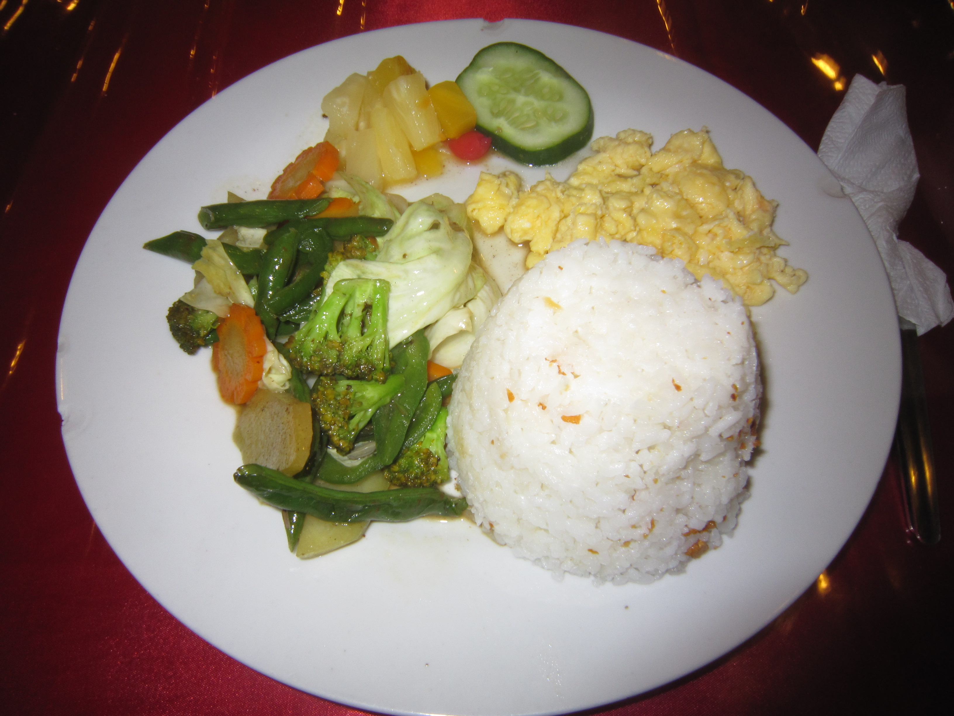ベジタリアンフードに玉子付きなので、細かいことを気にしてはダメですねw