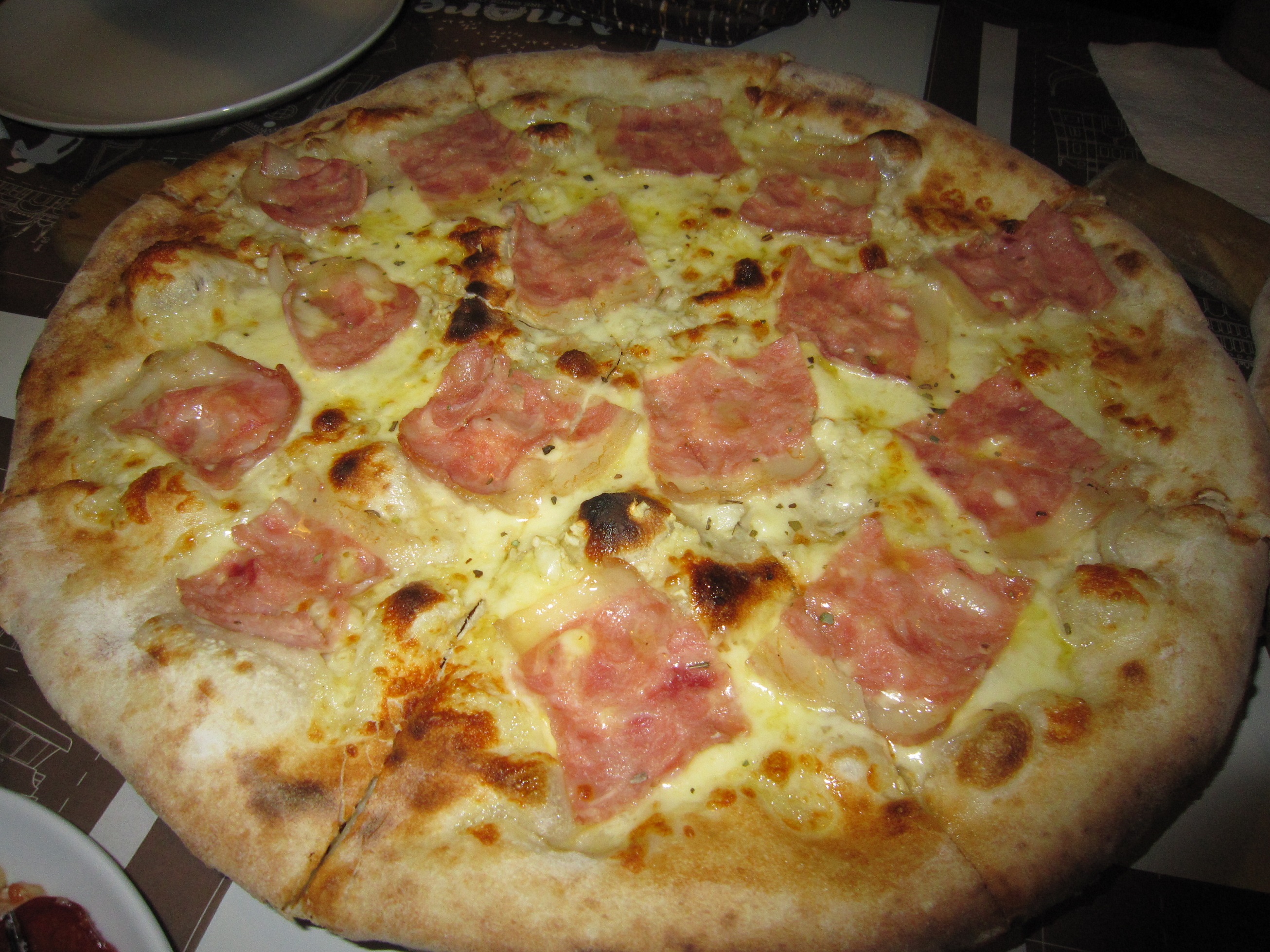 ホワイトソースと生ハムのピザ。